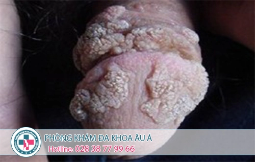 + Sau thời kỳ ủ bệnh, rãnh quy đầu, thân dương vật, vùng bìu nổi những mụn thịt mềm, màu hồng nhạt, nhô cao trên bề mặt da, không gây đau.
