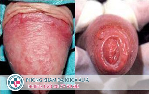 Viêm bao quy đầu: Nổi những mụn trắng hoặc mụn đỏ, một thời gian sau mụn vỡ ra gây lở loét. Bên cạnh đó kèm theo triệu chứng nóng rát xung quanh quy đầu.